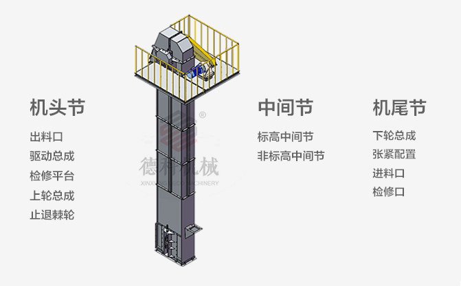 斗式提升機是利用均勻固接于牽引構(gòu)件上的數(shù)個料斗,垂直向上提升物料的連續(xù)輸送性機械。
